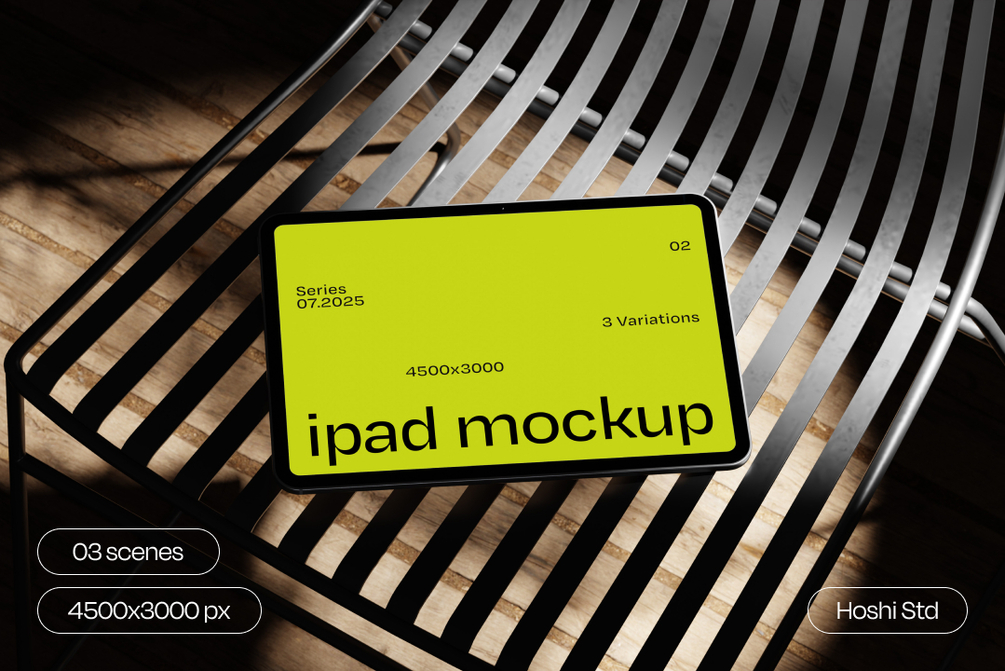 Showcase your UI/UX designs, web projects, or digital portfolios using this modern iPad Mockup Set. Captured on a sleek chair with rich lighting contrast and clean composition, this mockup offers high-resolution visuals perfect for designers, developers, and marketers looking for premium presentation assets.